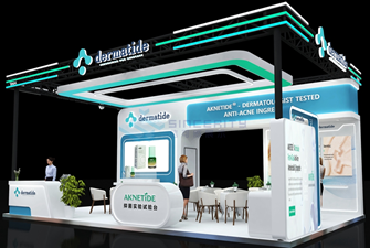 美妆展会观众流动快、竞品扎堆,普通展位很容易被忽略,但这个 54㎡四面开展位彻底打破了这一困境。展商最担心的 “单向曝光、其他方向盲区” 问题完全不存在,通透无围挡的设计让展位从四个方向都能 “敞亮迎客”。